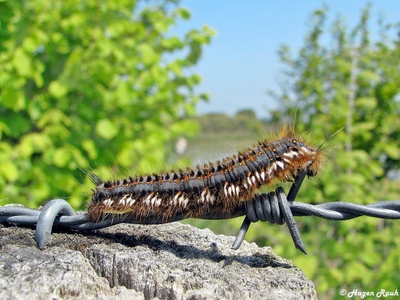 Raupe auf Stacheldraht